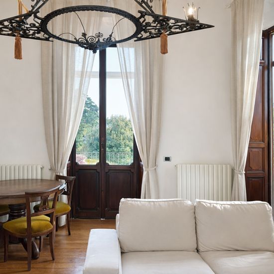 Appartamento - Bilocale a Arona ARONA - APPARTAMENTO IN VILLA STORICA - VISTA LAGO In una splendida villa storica situata nella tranquilla frazione collinare di Dagnente, proponiamo in locazione raffinato bilocale con studio soppalcato, completamente ristrutturato con materiali e finiture di alto livello. Lappartamento gode di una vista lago spettacolare e dominante, una delle più belle della zona, visibile sia dagli interni che dagli spazi esterni. Composizione: Soggiorno luminoso con cucina nuova su misura Camera matrimoniale Studio soppa...