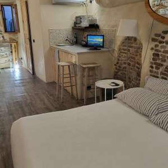 Small shabby-chic studio of about 28 sqm, basement level, featuring a kitchenette equipped with a cooking plate, mini fridge, and microwave, along with a cozy sofa, desk, double bed, and a bathroom with a shower. This charming studio is nestled in the heart of Bolognas historic center, offering convenience to the university area and local attractions. Perfect for students or visitors seeking a quaint, affordable base. Enjoy modern amenities including free Wi-Fi, air conditioning, and a tv for your comfort. Its central location allows easy ac...