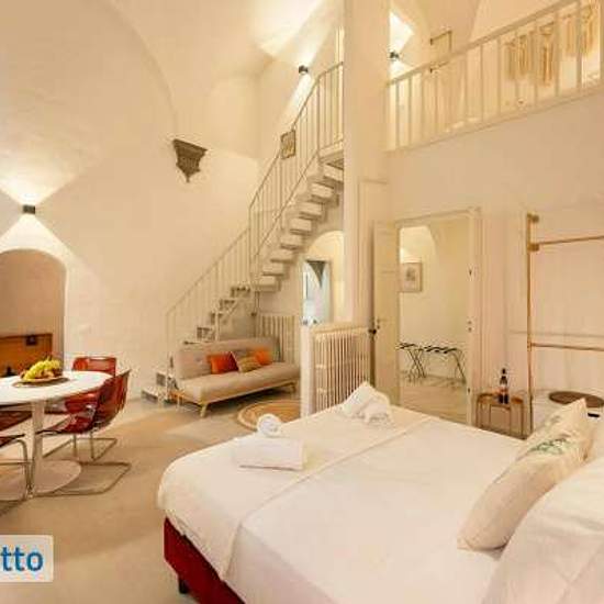 The grandeur and beauty of the frescoed façade of the historic building housing this loft will leave you in awe. The entrance is independent. Perfect for an authentic Florentine experience, the loft is located on Via dei Benci, just a few steps from the magnificent Piazza Santa Croce. Equipped with a functional kitchen that includes a washing machine, two bathrooms, a spacious open-plan bedroom, a sofa, a smart tv, Wifi, and an open loft area upstairs with a single bed and a private bathroom. The Space This loft is situated in a historic bui...