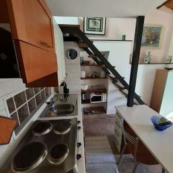 Intera proprieta' massimo di 2 persone in coppia (letto matrimoniale) Appartamento composto da ingresso, bagno, soggiorno con angolo cottura, letto su soppalco, terrazza panoramica rivolta al Parasio. Vista scorcio di mare. L'appartamento si trova nella principale via di Porto Maurizio, via Felice Cascione in un stabile settecentesco completamente ristrutturato. Completamente arredato (condizionatore, lavatrice, microonde, nespresso), dotato di stoviglie, biancheria con ricambio, fornello con piastre elettriche. In zona comoda a tutti i serv...