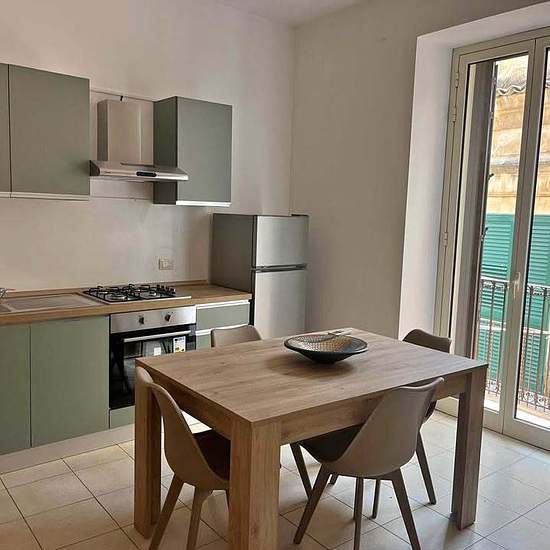 Affitto appartamento in centro storico, in via Giovanna Sortino Scribano n. 59 posto al primo piano (no ascensore) all’ interno di un palazzo ristrutturato. L’ appartamento è stato appena arredato come si evince dalle foto, è di circa 60 mq e presenta una camera con cucina, un bagno con antibagno, uno stanzino per ripostiglio ed una camera matrimoniale molto grande. L’appartamento è consigliato per una coppia. È richiesto contratto di lavoro ed una permanenza minima di un anno. Le utenze sono esclusa da prezzo indicato.