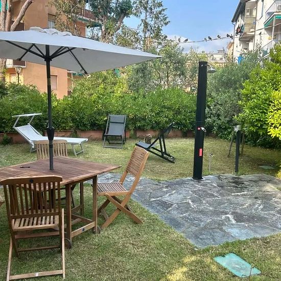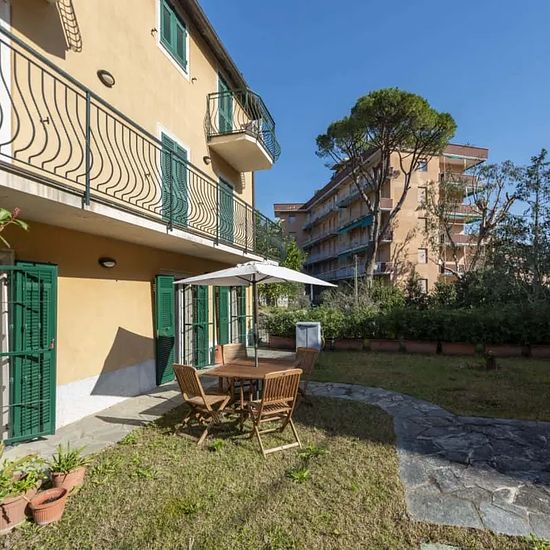 Appartamento di 55 m² a Santa Margherita Ligure, ideale per famiglie, situato a 15 minuti a piedi dalla spiaggia. Dispone di 1 camera da letto con letto matrimoniale e singolo, 1 bagno, soggiorno con TV a schermo piatto e divano letto matrimoniale, cucina ben attrezzata e zona pranzo per 5 persone. Spazio esterno con giardino privato, tavolo da pranzo, lettini prendisole e parcheggio gratuito. Accesso al piano terra senza ascensore; 5 gradini per il giardino, ma ingresso dal parcheggio senza scale. Self-check-in disponibile. Posizione centra...