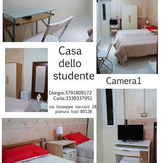 Casa studenti per 6 zona flegrea (pianura) Disponibile da settembre Affitto camera per studenti 3 camere per 6 studenti 235 euro a persona camera doppia per 2 persone 470 se poi la volete esclusiva va bene lo stesso . Con 2 bagni in casa , Ovviamente con regolare contratto e tutto ! Utenze escluse Appartamento con tutti i confort ogni stanza ha tutto quello che ci si vuole poi c’è lavatrice cucina nuova con tutti gli accessori nuovi , la casa dispone anche di un giardino di 80 mq adiacente alla casa . Ogni camera con frigo in camera adat...