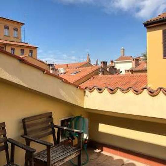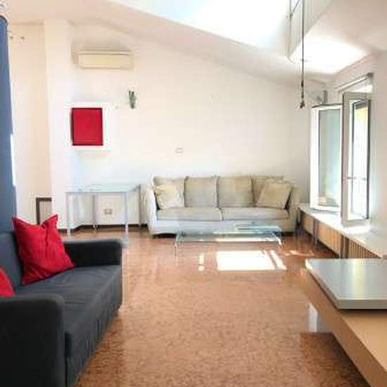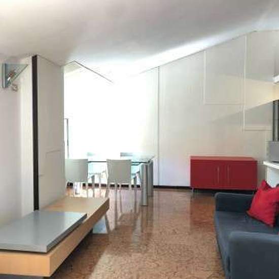 Appartamento attico al terzo piano con ascensore, di 75 mq arredato con ingresso, salone con angolo di cottura, terrazza, camera e bagno. Aria condizionata, Termo centralizzato, spese condominiali 180€ mese comprensivi di spese di riscaldamento. Garage adiacente in via Zanolini. Cantina.