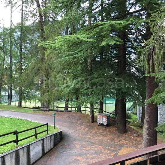 All interno della pineta dell ex grwnd hotel appena sopra il centro si affitta caratteristico bilocale 54 mq . 4 posti letto soggiorno con angolo cottura camino, camera matrimoniale bagni con vasca/ doccia, ampio giardino condominiale con fontana barbecue e zona solarium. Giochi bimbi e in estate attività con animazione. Si affitta per tutto l anno al prezzo indicato. Per stagione invernale da novembre a maggio compresi a 3300. Affitto mensile la quota dipende dal mese. Le spese di corrente e riscaldamento sono a consumo.