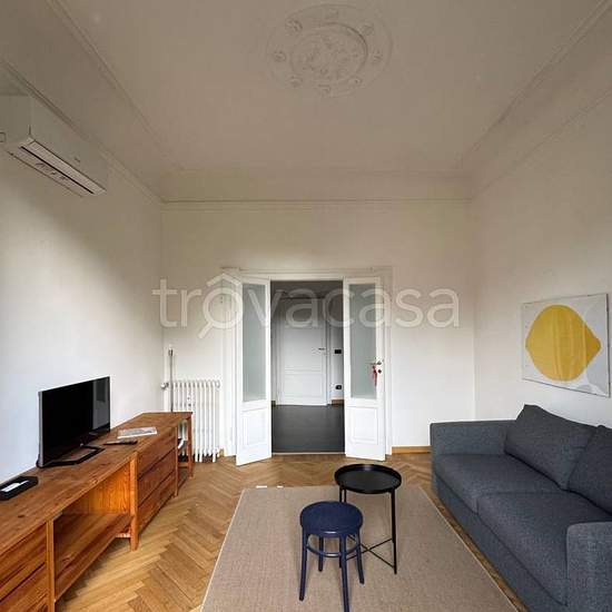Elegante, luminoso e spazioso appartamento ristrutturato e semi-arredato, in stabile signorile, sito al terzo piano con ascensore, aria condizionata, balcone e affaccio a 180 gradi sulla alberata piazza Firenze. Internet fibra (predisposizione) e tv. La pianta, simmetrica, è caratterizzata da un ampio ingresso (utilizzabile come zona pranzo o ulteriore soggiorno) con pratico ripostiglio. Il living, con porta-finestra e balcone panoramico, ha soffitto con stucchi e parquet d'epoca restaurato. Il divano-letto è da una piazza e mezza. Anche la ...