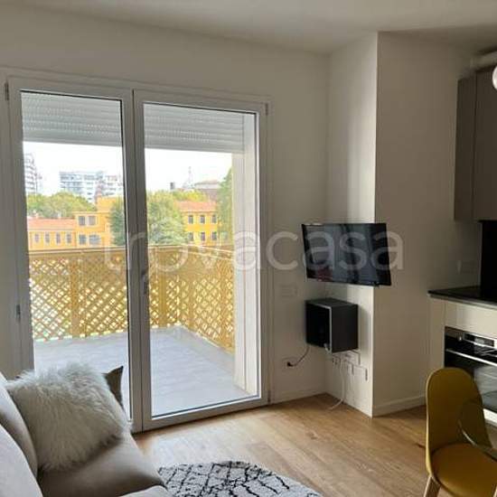 In Via Flavio Gioia 5 (edifici di recente costruzione) con vista su City Life e a 700mt dalla fermata della metropolitana Amendola Fiera (Linea Rossa), proponiamo in locazione, con incarico in esclusiva, un appartamento bilocale di circa 45mq + terrazzo loggiato di 18mq posto al piano 4° (di 6). Il terrazzo affaccia sul giardino comune interno e gode della vista su City Life. Ingresso con porta blindata, cucina a vista nella zona giorno, disimpegno, bagno con doccia, camera da letto, terrazzo loggiato di 18mq ! Doppio ascensore, portineria t...
