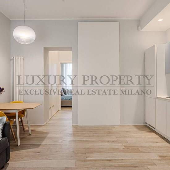 Via Piero della Francesca - a ridosso da Corso Sempione in stabile vecchia Milano, proponiamo in locazione bilocale di 50 mq finemente ristrutturato e arredato al secondo piano con ascensore e servizio di portineria mezza giornata. Internamente si compone di ingresso nel soggiorno con cucina a vista, una camera matrimoniale e bagno con doccia. L'immobile si presenta in ottime condizione, completamente ristrutturato con finiture di pregio, parquet in rovere chiaro in tutti gli ambienti, infissi in legno doppio vetro, impianto di aria condizio...
