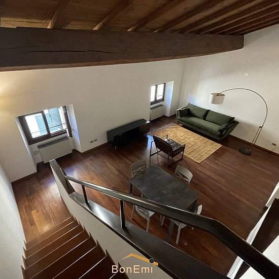 In Palazzo Storico, contesto signorile con travi a vista, affittasi elegante appartamento all' ultimo piano, disposto su due livelli e completamente arredato. L'immobile è composto da ingresso, grande soggiorno pranzo, con angolo cottura separato, piccolo ripostiglio, letto matrimoniale, lavanderia, bagno. Completano l'unità abitativa una cantina e un posto auto coperto. Inoltre è presente impianto di condizionamento autonomo. Si richiedono massime referenze e si prega di contattare unicamente via e-mail. Sarete ricontattati.