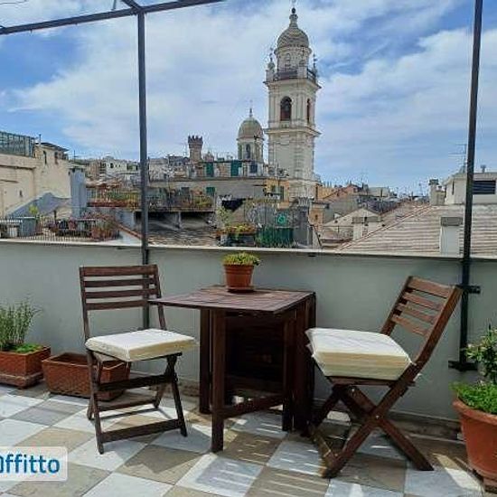 Via San Lorenzo - in palazzo dei Rolli - affittasi attico con terrazzo perfettamente ristrutturato e completamente arredato, composto da ingresso attrezzato, ampia zona giorno con cucina a vista e ripostiglio lavanderia, camera matrimoniale e bagno con ampia doccia. La zona giorno affaccia su uno splendido terrazzo ad angolo, dal qual, tramite scala a chiocciola esterna, si accede alla porzione sovrastante di terrazzo. Si affitta esclusivamente con contratto transitorio e referenze controllabili. Canone mensile 1. 200€ + 100€ spese condomini...