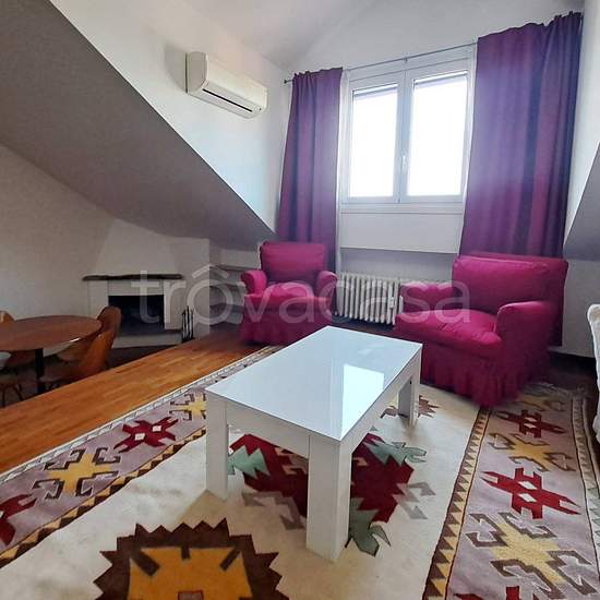 Monza Parco, Via Rovani 14, disponiamo in locazione di elegante mansarda con vista sulla Villa Reale in condominio signorile con giardino e servizio di portineria full time. Ingresso, soggiorno con camino, cucina, bagno e camera matrimoniale. Completamente arredata. Lavatrice, piastra induzione, lavastoviglie e impianto climatizzazione freddo/caldo. Vano cantina. Canone mensile Euro 850 oltre spese condominiali mensili che includono il riscaldamento Euro 220. Contratto cedolare secca quattro anni più quattro. Deposito cauzionale tre mensilit...