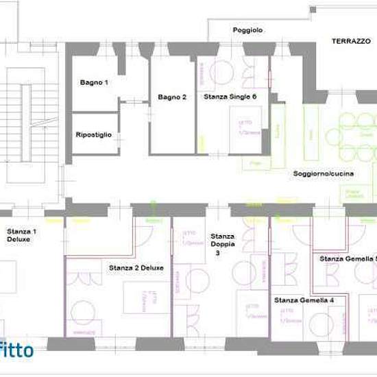 Stanze singole o doppia Per studenti! Casa super! Proponiamo alla locazione fino a 5 stanze singole per studenti ed una doppia in appartamento con accogliente sala ad uso comune con grande cucina nuova e terrazzo! Super accessoriata e doppi servizi finestrati, in condominio rispettabile e di pregio. Immobile inserito in un contesto centralissimo e ricco di servizi ed appena ristrutturato ed arredato, ma soprattutto vicinissimo alle principali facoltà universitarie di Trento. Raffrontandosi con la planimetria stanze troviamo i seguenti prezzi...
