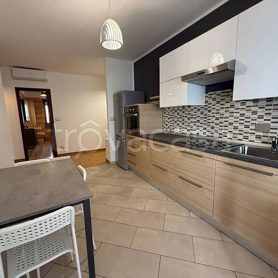 Appartamento in locazione ad uso transitorio per non residenti, Contratto massimo di 18 mesi e minimo di 12 mesi. Zona strategica, vicinanze stazione ferroviaria e centro del paese. L'alloggio è situato in una palazzina degli anni '80 rifinita in paramano, secondo piano con ascensore. Ingresso, cucina abitabile con uscita sul balcone dotato di tende estive ed invernali, soggiorno, camera da letto, bagno e ripostiglio. L'appartamento verrà consegnato con arredo presente in foto. Il canone di locazione mensile è di 600 euro a cui si dovranno a...