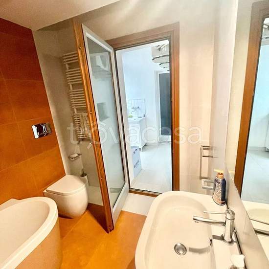 Appartamento lussuoso e completamente arredato con mobilia di pregio, posto al settimo piano e così composto: ingresso, ampio soggiorno con cucina a vista e uscita su grande terrazzo di 52 mq panoramico, due camere da letto, due bagni con balconcino di servizio. Possibilità di locazione posto auto coperto. Si accettano solo persone referenziate.