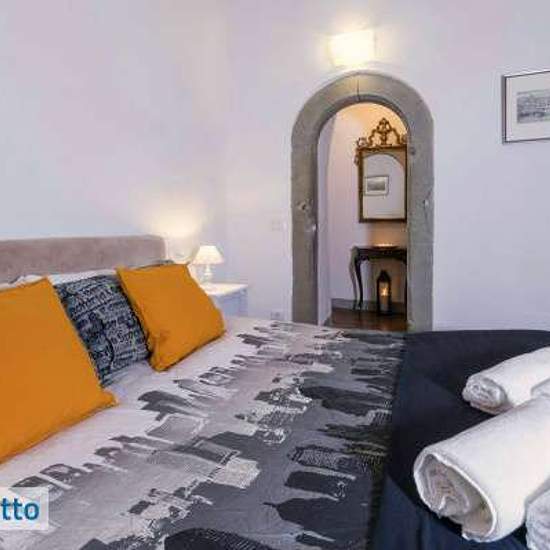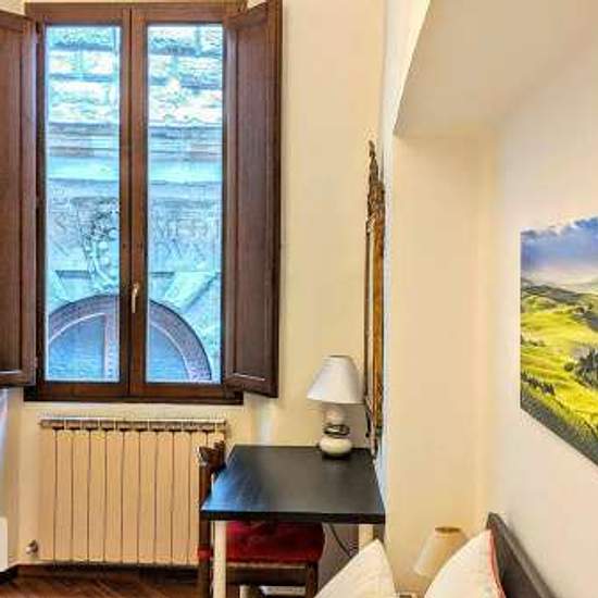 Two bedrooms (and two bathrooms) apartment located in the historical centre of Florence. Composed of dining room, kitchen, two bedrooms (one facing the internal courtyard and the other facing Palazzo Vecchio) and living area. The apartment is equipped with air conditioning heating, unlimited wifi access and double glazed windows. Uffizi is just around the corner, Palazzo Vecchio is on the other side of the street. Ntraduci la descrizione dell'annuncio in italiano