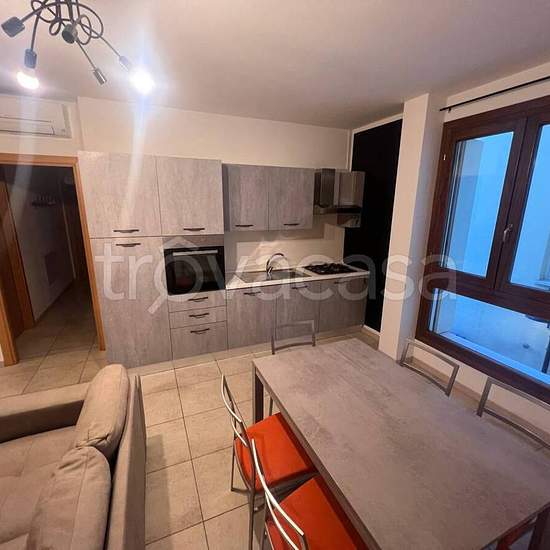 Ottimo appartamento in pieno centro, arredato completamente, disimpegno di entrata, soggiorno con cucina a vista, disimpegno notte con lavanderia ( attrezzata con lavatrice e sanitari), bagno principale con doccia, cameretta con letto a castello, camera matrimoniale. Riscaldamento a pavimento, climatizzato due zone ( giorno e notte ) La camera ha un terrazzino con vista centro cittadino. Luminoso e ben tenuto. Posto auto di proprietà in corte privata.