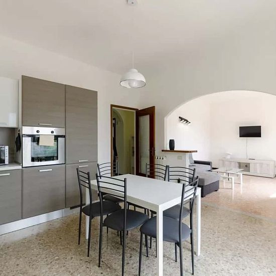 DETAILS This fabulous apartment in Moneglia offers everything for a family seaside vacation. Located just a 10-minute walk from the beach and historic center, it boasts 3 bedrooms, 1 bathroom, a living room, a fully equipped kitchen, and 3 balconies. Essentials, linens, and towels are provided, with garage parking available. Enjoy sunny views from the balcony, cook in the modern kitchen, and unwind in a relaxing bath. The living room features a large sofa bed and smart TV, while the kitchen has all necessary appliances and a dining area for ...