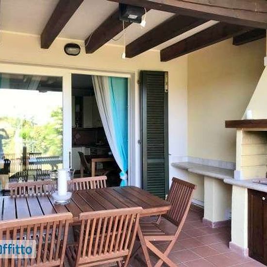 In contesto esclusivo immerso nel verde proponiamo trilocale al piano terra con giardino esclusivo e portico per godersi pranzi e cene in assoluto relax composto da soggiorno con angolo cottura ,disimpegno che porta al bagno cieco con doccia, cameretta singola finestrata con letto a castello ,camera matrimoniale. L'immobile viene consegnato arredato come da fotografie ,con pentole, stoviglie, lavatrice e lavastoviglie. Sono ammessi animali di piccola taglia. Disponibile per giugno(1500)e luglio(2500). Classe Energetica: g