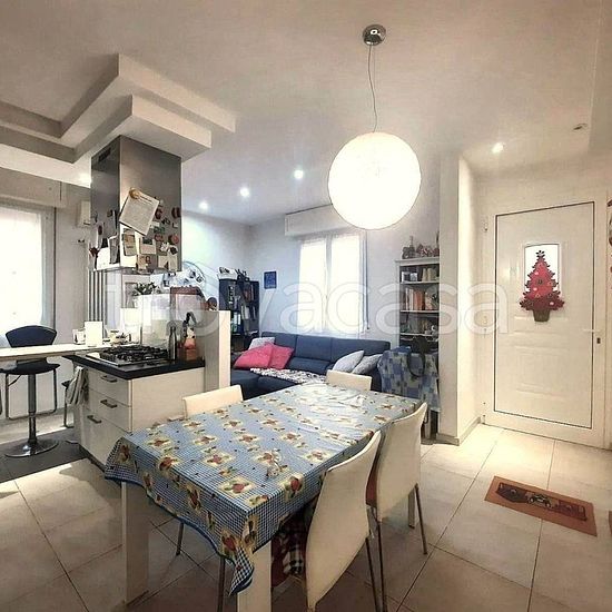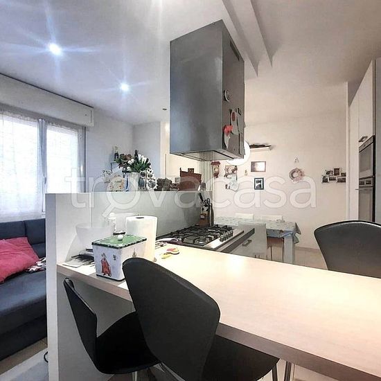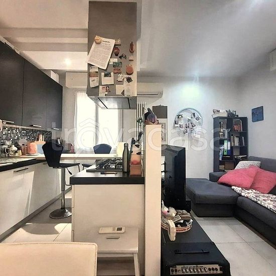 L'appartamento è costituito da un'ampia zona giorno open space con cucina a vista; un pratico disimpegno conduce poi alla zona notte, composta da due comode camere matrimoniali e un bagno. L'abitazione si presenta in ottimo stato e pronta all'uso, con finiture curate che includono infissi in alluminio con doppio vetro, impianto di riscaldamento autonomo e aria condizionata.
