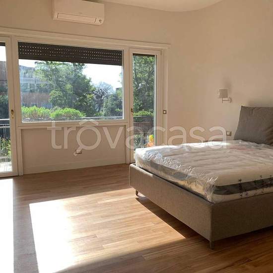 Affittasi elegante appartamento trilocale al primo piano in palazzina signorile, situato nella prestigiosa zona eur, a pochi passi da Viale Europa. L’immobile, completamente ristrutturato e arredato con mobili nuovi, ha una superficie interna di 122 mq e dispone di ampi spazi esterni: giardino privato di 100 mq, terrazza di 150 mq e balcone di 34 mq. L’appartamento si compone di ingresso, salone doppio con angolo cottura a vista completamente attrezzato, due camere da letto matrimoniali, due bagni moderni e un comodo ripostiglio. Gli ambient...