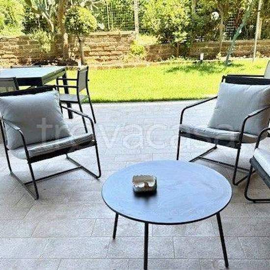 600 m dal mare-delizioso appartamento con giardino inglese. Completamente ristrutturato e arredato. Settimanale. 2 camere con letto matrimoniali, 2 bagni, salotto doppio con angolo cottura, infissi nuovi con doppio vetro, zanzariere, aria condizionata, posto auto. Raggiungibile dalla stazione a piedi.
