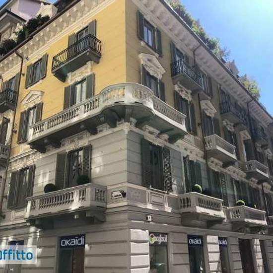 Centralissimo in zona pedonale in Via Mazzini 1 angolo Via Lagrange in un meraviglioso stabile signorile d'epoca del 1887 appena ristrutturato ( hanno da poco rifatto le due facciate, il tetto e tinteggiato androne e scale) affittasi appartamento vuoto ( gli arredi visibili in foto erano del precedente inquilino), si trova al piano primo (senza ascensore) ed è così composto: ampio salone doppio con finestra e portafinestra su balcone lato Via Mazzini, una camera da letto con parquet, una cucina abitabile, un disimpegno, un enorme bagno dotat...