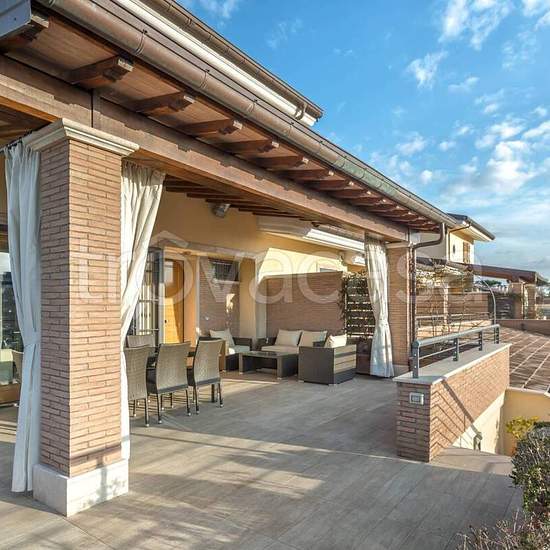 Affascinante villa a schiera casal lumbroso finemente ristrutturata ed arredata Affittasi villa a schiera su due livelli in contesto residenziale ed elegante nella zona aurelia-casal Lumbroso Con ottima esposizione solare completamente fuori terra di ca. 90 mq oltre a grande box e grande giardino di ca. 200 mq compresa la parte pavimentata. La villa si compone al primo piano di grande portico coperto, con un lungo balcone che circonda tutta la villa con ampi spazi esterni abitabili di ca 90 mq. Dall'entrata principale troviamo un giardino d'...