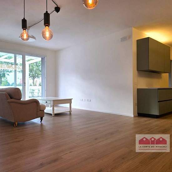 Camisano: nuova costruzione, ingresso indipendente, soggiorno con cucina arredata, tre camere, due bagni, garage, lavanderia, giardino recintato, riscaldamento a pavimento, aria condizionata. Rif. 2187X euro 1.500 Nuovo appartamento a Camisano in zona residenziale molto tranquilla all'interno di un piccolo complesso immobiliare. Gode di un ingresso indipendente attraverso il giardino recintato privato e si sviluppa tutto su un livello. Si entra in un bel soggiorno luminoso con vetrate affacciate sul giardino, la cucina è a vista ed è complet...