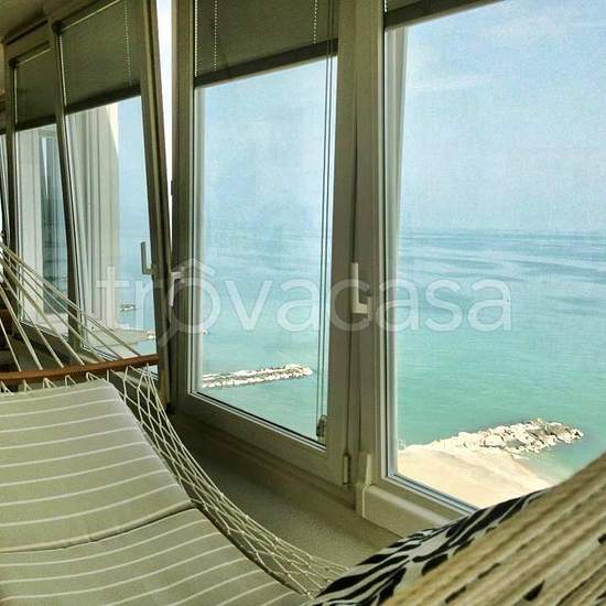 Affittasi nella bellissima Portoverde situata tra Misano e Cattolica e a 10 minuti da Riccione, appartamento di 90 mq. Fronte mare e sul mare al 10 piano con inclusi 3 posti auto coperti e un posto auto in garage con colonnina di ricarica per auto elettriche, con terrazzo verandato con finestre apribili scorrevoli con tendine interne orientabili e a vasistas, interamente arredato con lavastoviglie, stoviglie, lavatrice, forno microonde, macchina per il caffè, sala con angolo cottura, 2 camere matrimoniali di cui una con cabina armadio, 1 cam...