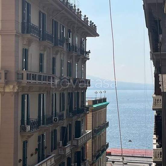 (Santa Lucia) a 100 mt dal lungomare di via Partenope, in signorile stabile d'epoca, affittiamo appartamento soleggiato di 120 mq, composto da ampio salone con angolo cottura, due camere da letto, due bagni finestrati, cabina armadio, condizionatori Aria caldo/freddo e ripostiglio oltre balconi. L'appartamento è in buono stato di manutenzione. Sono richieste congrue garanzie reddituali: fideiussioni bancarie o adeguata busta paga. Libero dal 03/2026.