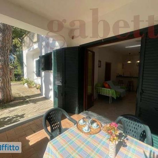 Appartamento arredato al piano terra, composto da soggiorno-pranzo con divano letto (una piazza) e angolo cottura, 2 camere da letto (una matrimoniale e una con due letti singoli), 2 bagni con doccia e disimpegno. è dotato di impianti di cottura, riscaldamento e climatizzazione elettrici e lavatrice. 1 posto auto non custodito.