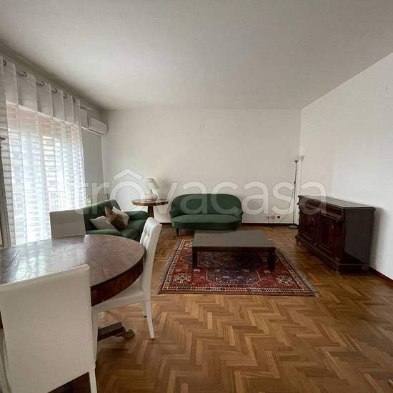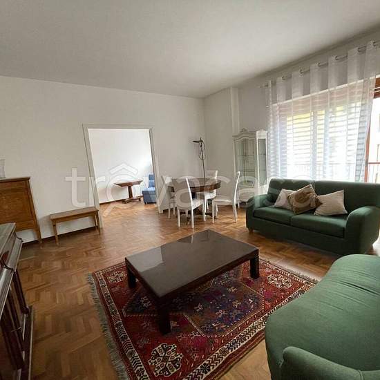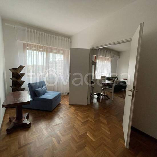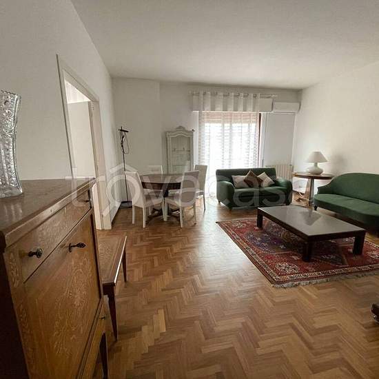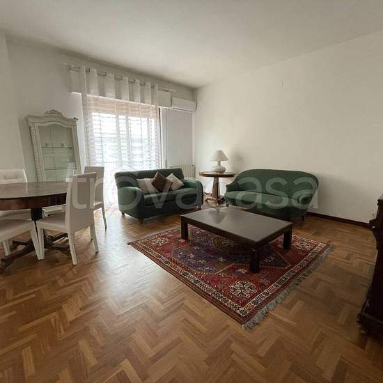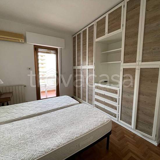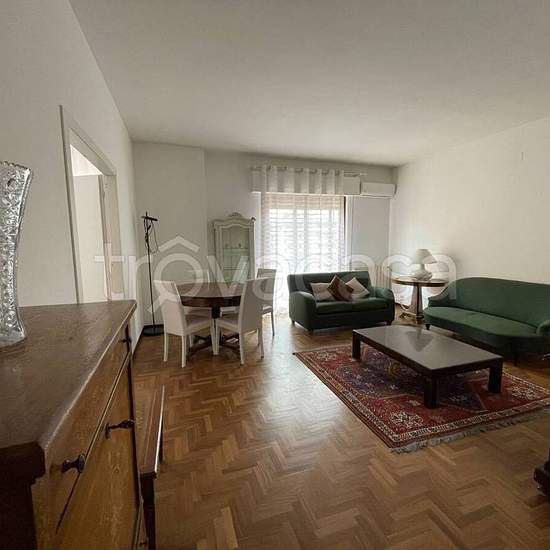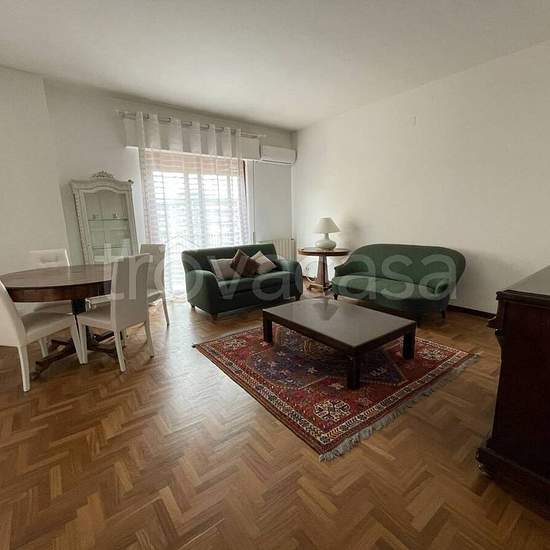 Via Toscanini, strada privata con accesso da via Zandonai e da via Beethoven. Elegante appartamento interamente arredato posto al 5^ piano di un palazzo con servizio di portierato e ascensore. Ingresso con porta blindata su zona living pari a due vani con grande balcone abitabile, tre camere da letto, di cui una con ampia cabina armadio attrezzata, l'altra con accesso a piccolo terrazzino, cucina soggiorno completa di elettrodomestici, due bagni (uno con vasca, l'altro con doccia), lavanderia, ampio ripostiglio. Riscaldamento autonomo e cond...