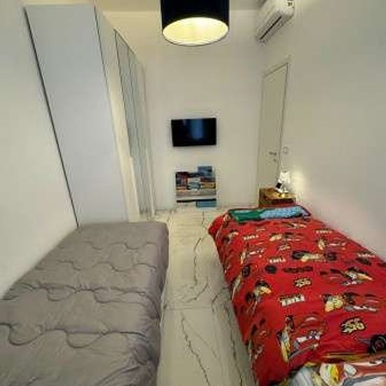 Affittasi con contratto transitorio annuale appartamento in villa bifamiliare in zona centrale, adiacente al porto Carlo Riva e alla passeggiata a mare. L'immobile è stato completamente ristrutturato con infissi e pavimento nuovi, rifatto l'impianto elettrico, di condizionamento e di riscaldamento con macchinari di ultima generazione. L'appartamento si trova al piano terra della villa circondato da giardino cortile, ed è composto da una zona ingresso un salone doppio con cucina a vista, una camera matrimoniale, una camera con due letti singo...