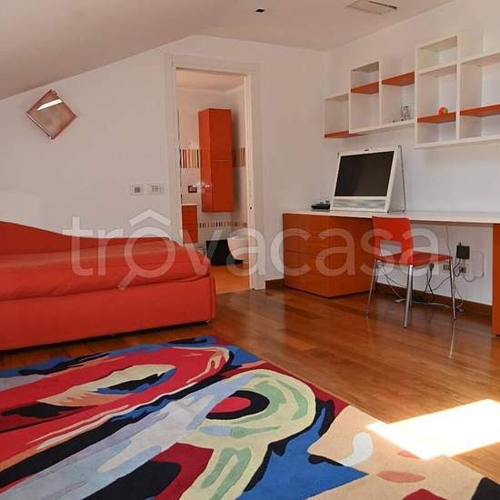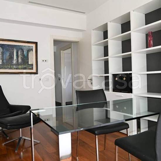 In contesto signorile, all'interno di un elegante comprensorio dotato di ampie zone verdi e servizio di portineria, posto al terzo e quarto piano di un palazzo in cortina servito da ascensore, proponiamo la locazione di un esclusivo attico di rappresentanza. L'appartamento, al primo livello, è composto da ingresso, ampio salone doppio con camino, sala da pranzo con annesso servizio per ospiti, camera da letto con bagno ensuite e cabina armadio, cucina abitabile completa di ogni comfort, uno studio e un'ampia balconata vivibile accessibile da...
