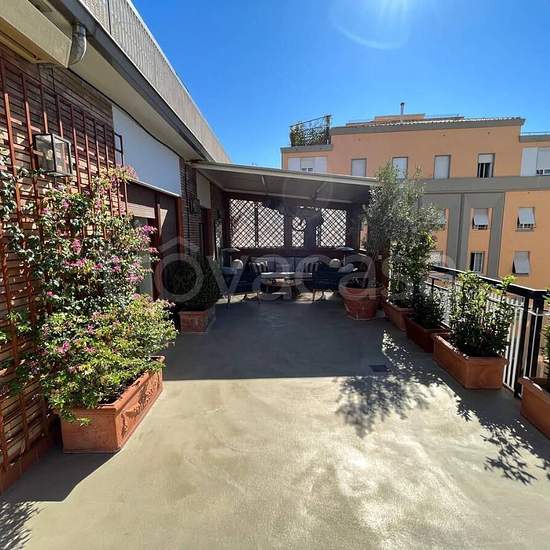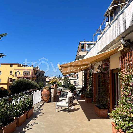 Nel cuore dei Parioli, in una delle zone più prestigiose e residenziali del quartiere, proponiamo in locazione un attico prestigioso e di rappresentanza, con ampie terrazze, situato in un contesto riservato e di grande eleganza. Superficie coperta di circa 240 mq – Terrazzo e due balconi per ulteriori 90 mq complessivi. L’immobile è situato al quarto piano di un palazzo signorile dotato di ascensore e, recentemente ristrutturato con materiali di altissimo pregio, è arredato con mobili di design contemporaneo, la cucina completamente attrezza...