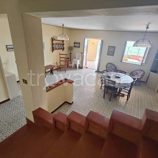 Affittasi villa a schiera per il mese di ottobre all'interno di un condominio di 4 unità immobiliari. L'abitazione ammobiliata, con accesso diretto al mare, è composto da: un ampio soggiorno, un ripostiglio, una cucina abitabile e un bagno al piano terra; tre camere da letto con ampi balconi e tre bagni al piano superiore; uno spazio esterno in parte coperto con parcheggio auto. L'affitto non è consentito per celebrazioni di eventi o feste. Max 6 persone. Utenze incluse. No agenzia