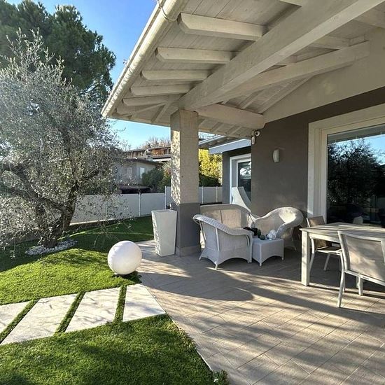 A Polpenazze del Garda, a pochi minuti dalle spiagge del Lago di Garda, offriamo in locazione transitoria una splendida villa con giardino e piscina privati. La zona è tranquilla e riservata, residenziale di sole villette. il primo cancello e il vialetto di accesso sono riservati a due ville che poi hanno ingresso carraio e pedonale privato. L'abitazione è di circa 150 mq disposta su tre livelli: al piano terreno troviamo una luminosissima zona giorno con vetrate aperte sul portico arredato, sul giardino e sulla piscina. Un grande tavolo nel...