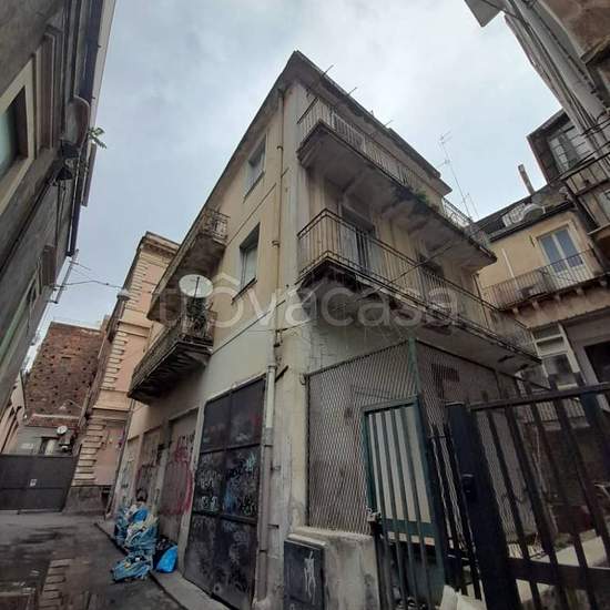 A pochi passi da via Etnea e piazza Stesicoro, Palazzetto disposto su 3 livelli, libero su 4 lati ,composto da zona cantina in unico ambiente da 100 mq circa, piano terra ingresso con scala che porta al 1 piano composto da 4 vani , balconato su ogni camera, e inoltre vi sono i vani garage/botteghe , con grandi vetrate, da poter adibire a qualsivoglia attività, al piano 2 con accesso tramite scala, ulteriore 4 vani e al 3 piano 3 locali tecnici e grande terrazza a livello che domina i tetti del bello centro storico. Il tutto completamente da ...