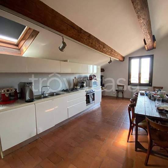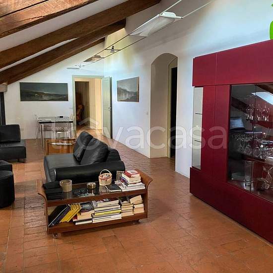 Appartamento di grandi dimensioni all'ultimo piano con ascensore in Palazzo Storico. Composto da: ingresso - ampio soggiorno - cucina abitabile con spazioso ripostiglio - 3 grandi camere da letto matrimoniali - ampio studio con vista a 360° su Ferrara - 2 bagni - lavanderia. Ottime rifiniture - aria condizionata - utenze autonome. Completa la proprietà un posto auto all'interno della corte comune.