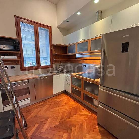 Porzione di villino con giardinetto privato e terrazza abitabile recentemente ristrutturato, arredato. Immobile molto particolare e originale, adiacente a tutti I servizi, composto come segue: Al piano terra giardinetto con accesso a un soggiorno, camera con guardaroba e bagno. Al piano superiore soggiorno, cucina arredata, due camere e un bagno. All'ultimo piano soggiorno con terrazza abitabile. Riscaldamento autonomo. Aria condizionata. Finiture di pregio. € 2.500 + €. 50 un piccolo garage