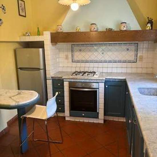 L'immobile, corredato da ampia veranda attrezzata, sviluppato su due livelli, è così strutturato: al piano terra ingresso in ampio soggiorno open space, sala da pranzo, bagno con doccia, cucina e cucinotto con sbocco sul cortile interno. Una camerina con letti a castello e bagno con doccia. Al piano primo una camera doppia, due ampie matrimoniali con terrazzo, di cui una con bagno privato, e bagno del piano. Rif 1390