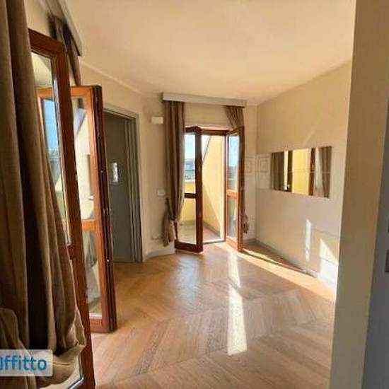 Zona San Siro Via Chinotto. In stabile signorile di recente costruzione proponiamo in locazione splendido attico super attico parzialmente arredato con finiture alta gamma. La soluzione abitativa, su due livelli, è così composta: al piano quinto ingresso, soggiorno con zona pranzo e terrazzo fruibile perimetrale che circonda tutto il piano, cucina abitabile, bagno lavanderia. Al piano sesto, raggiungibile attraverso una ampia scala in marmo o ascensore privato al piano, grande soggiorno con angolo bar, cinque camere da letto con bagno en sui...