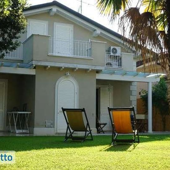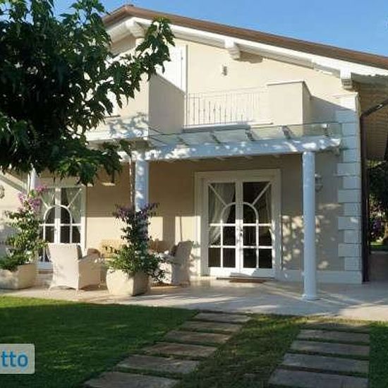 Rif 70-10 pl: il prezzo indicato si riferisce al canone mensile in caso di affitto annuale. I prezzi estivi sono diversi. Non si affittano mesi singoli. Marina di Pietrasanta Fiumetto, splendida villa, di recente costruzione, con giardino su tutti i lati e dependance situata a 300 mt dal mare e 100 mt dal Parco della Versiliana. Piano terra: ingresso, ampio open space composto da soggiorno sala da pranzo con camino e bella cucina abitabile con accesso ad ampia veranda attrezzata, lavanderia, camera matrimoniale, bagno doccia tutto rifinito i...