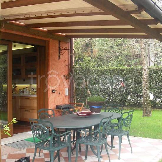 Conegliano in prossimità zona Campolongo, affittasi porzione di testa costruita nel 1995 e disposta su tre livelli. Al piano terra: entrata, ampio salotto con caminetto, bagno di cortesia, cucina vivibile con uscita al patio coperto, garage di 20 mq e gradevole giardino piantumato sui tre lati della casa di 300 mq circa. Al Primo piano: 4 camere e bagno finestrato con vasca. Nell'interrato splendida taverna, bagno con doccia, cantina, lavanderia e ripostiglio. L'immobile è dotato di: porta blindata, serramenti di legno con vetrocamera, risca...