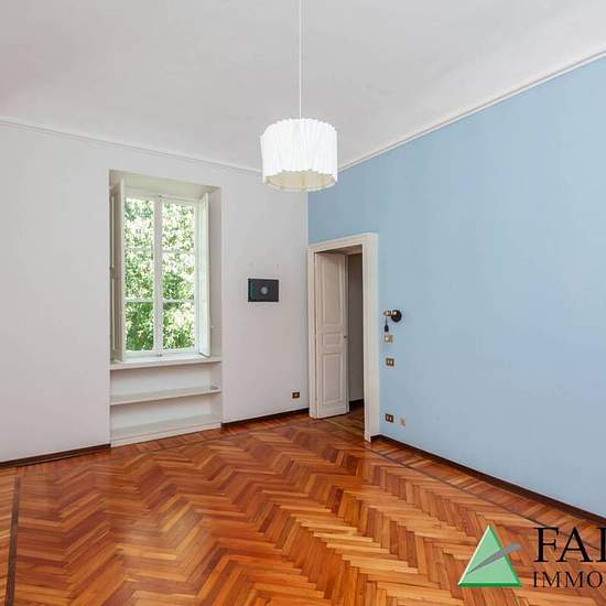 Nella storica zona centrale di Torino, in Piazza Maria Teresa, una delle piazze più eleganti della città, a breve distanza dal fiume Po, dalla Piazza Vittorio e dal parco del Valentino, in palazzo d’epoca sotto tutela della Belle Arti, proponiamo in locazione un elegante appartamento angolare, con 3 affacci e disposto su due livelli (piano secondo e terzo mansardato), composto al piano secondo (di 230 mq) da ampio ingresso, grande salone doppio con affaccio sulla piazza e verso il cortile interno, 2 camere da letto con bagno centrale condivi...