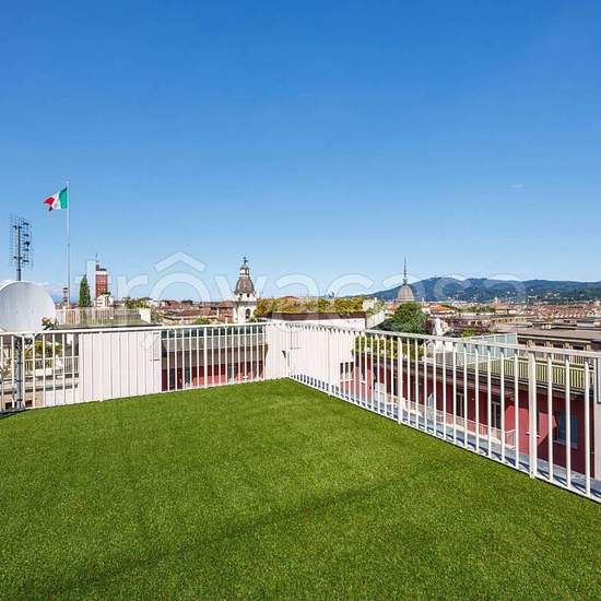 Nel prestigioso Palazzo San Carlo, nel cuore di Torino tra Via Roma e Piazza c.L.N., proponiamo in affitto un esclusivo attico arredato su tre livelli con 2 terrazzi panoramici e solarium. Al quinto piano si sviluppa la zona giorno con salone doppio, cucina attrezzata, sala da pranzo, quattro camere, quattro bagni, lavanderia, camera di servizio con bagno e affacci esterni su terrazzo e balconi. Al piano superiore una camera con bagno si apre su un grande terrazzo, mentre al settimo piano un solarium privato offre una vista unica sulla città...
