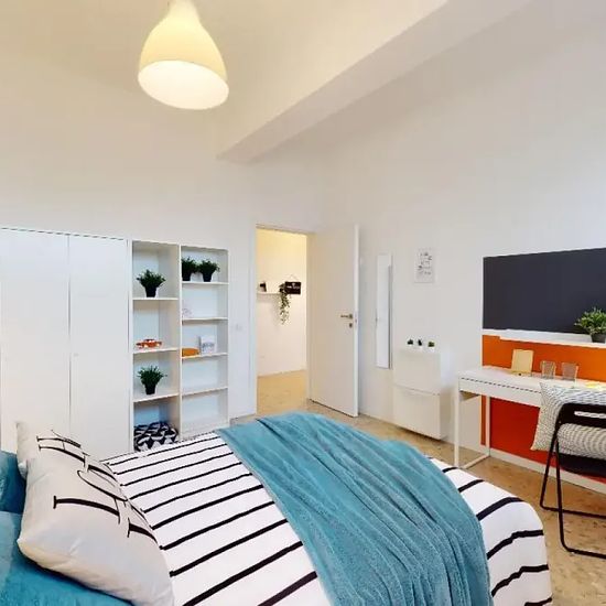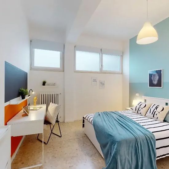 Zona Via Oberdan, si affitta una bellissima suite singola rimodernata appositamente per offrire comfort e comodità ai nostri studenti. La stanza è dotata di letto piazza e mezza, armadio 3 ante, scrivania con portaoggetti, comodino, tendaggi, specchio, scarpiera, libreria. I colori delle pareti favoriscono il buon umore e aiutano nello studio. Looking for a comfortable shared living experience? This spacious 6-bedroom apartment located in the Sant'Eustachio neighborhood of Brescia is perfect for you. It features a well-equipped kitchen for y...
