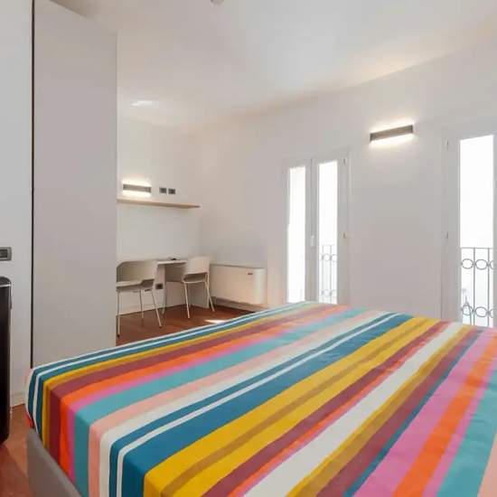 Looking for a modern and functional room in the heart of Ferrara? Inside the Corte Estense For Students residence, we offer you a room (double for single use or double) with a private bathroom, air conditioning, and designer furnishings with a youthful, contemporary feel. The space is designed to ensure comfort and style, perfect for those seeking a refined living experience in a central, convenient location close to all university and city amenities. In the heart of Ferrara's historic center, just steps from all the main university facultie...