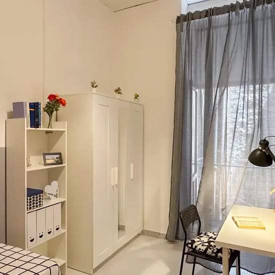 Zona Napoli Centro Storico, si affitta con formula ALL INCLUSIVE E CAUZIONE ZERO, una bellissima stanza singola di 10mq con balcone. La stanza é stata ristrutturata appositamente per offrire comfort e comodità ai nostri studenti, dotata di arredi nuovi quali: letto singolo, comodino 2 cassetti, armadio 3 ante con specchiera, scrivania con sedia, tendaggi, libreria, lampada e ottima illuminazione che aiuta nello studio. La camera é situata in posizione strategica e ambita per raggiungere le varie Università presenti nel centro storico in meno...