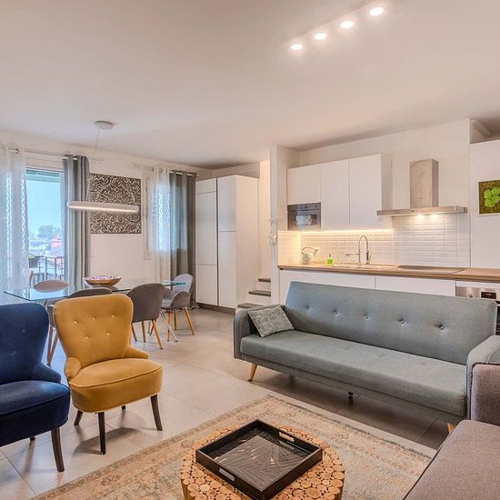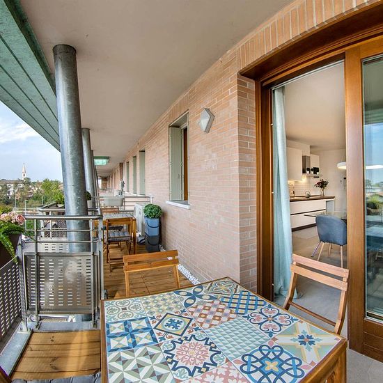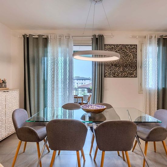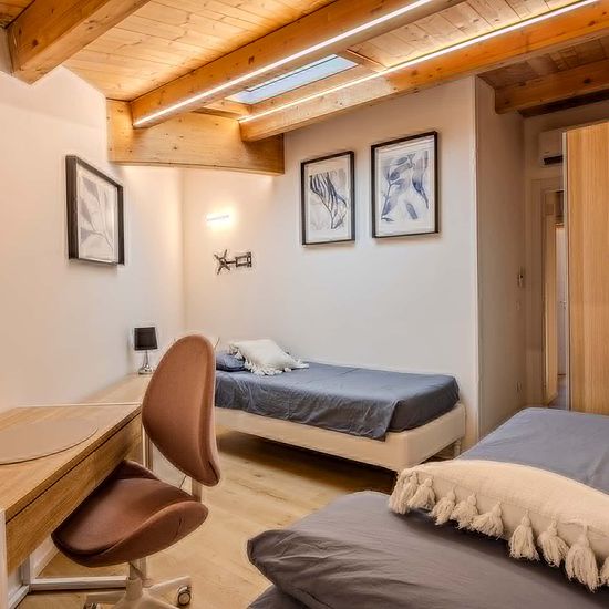 [ITA] Appartamento nuovo di 210 mq, composto da un ampio soggiorno, cucina, terrazza. L’appartamento, con finiture di alto livello, è disposto su due piani e offre una zona giorno spaziosa con cucina a vista che si affaccia su un ampio terrazzo, tre bagni. La cucina è attrezzata con due frigoriferi, due freezer separati, lavastoviglie, forno, forno a microonde, piano cottura a induzione, televisione 4K, lavatrice e asciugatrice Miele. Le stanze sono complete di due letti con due armadi a due ante con cassettiera, scrivania con poltrona ergon...